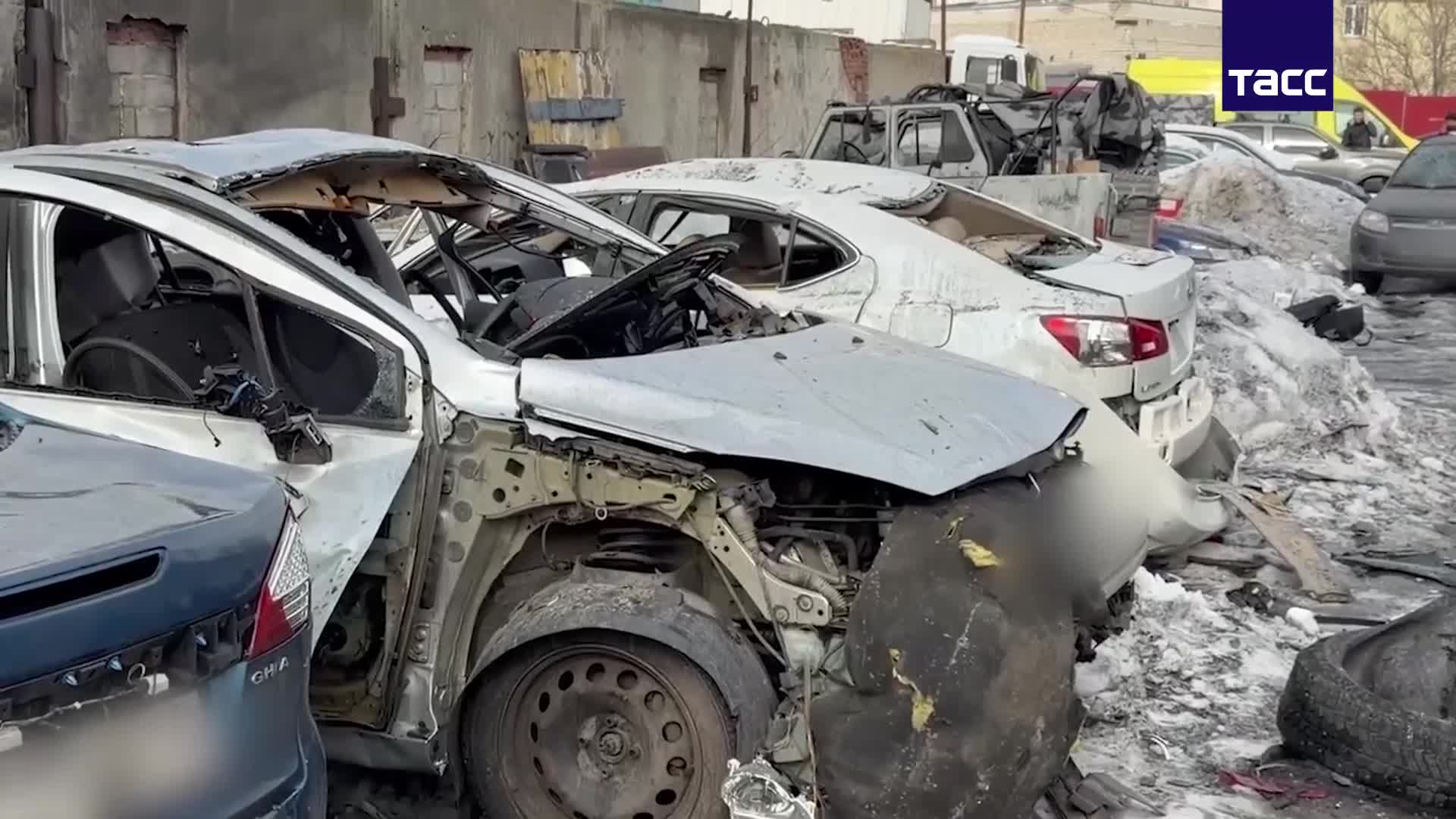 Последствия атаки БПЛА со стороны ВСУ на автосервис в Курске