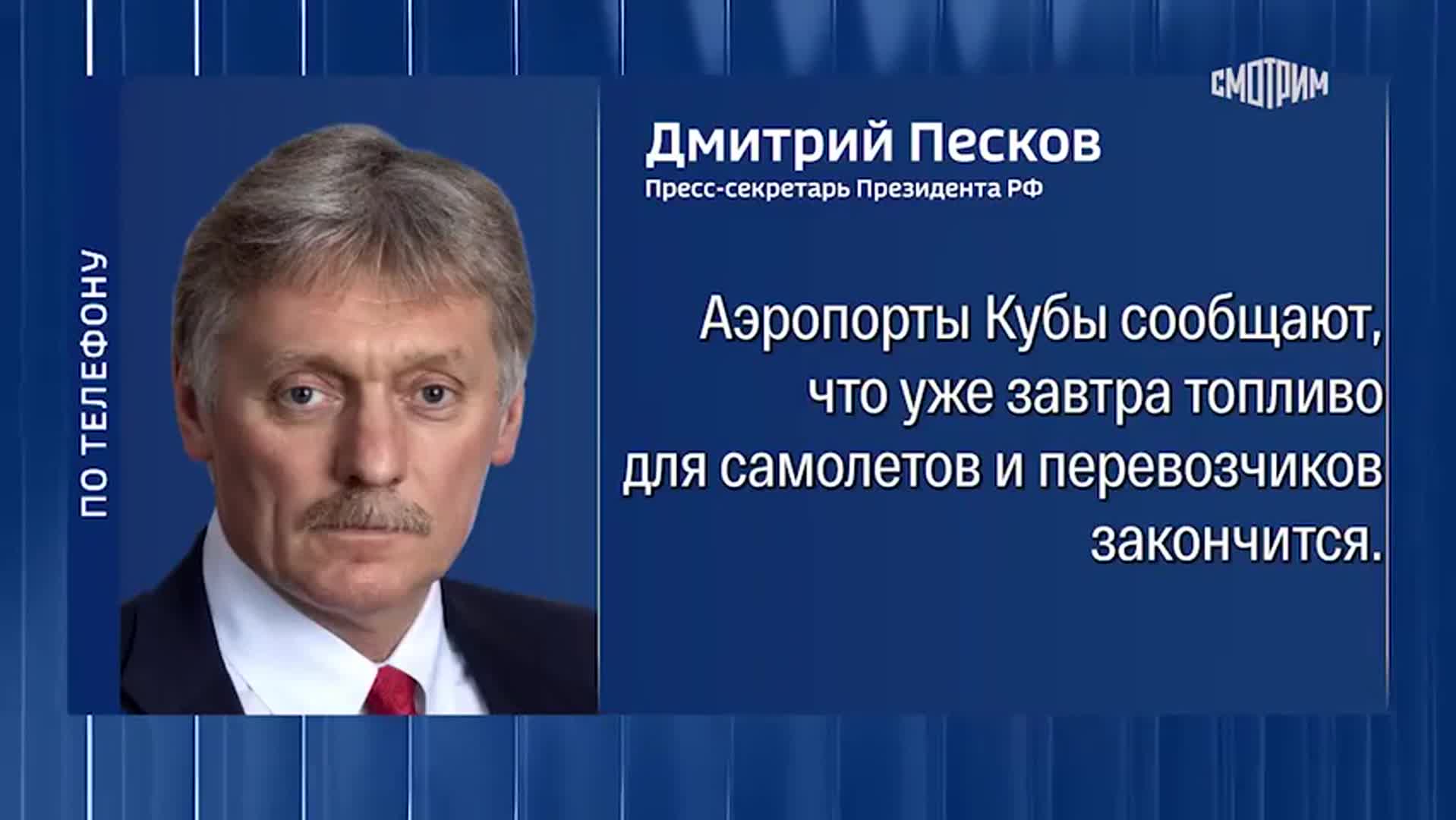 Песков: Россия обсуждает вывоз туристов с Кубы и помощь Гаване